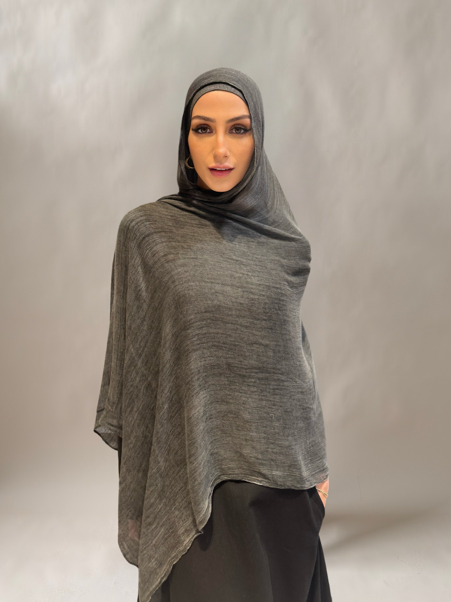 crinkled hijab set #1 charcoal