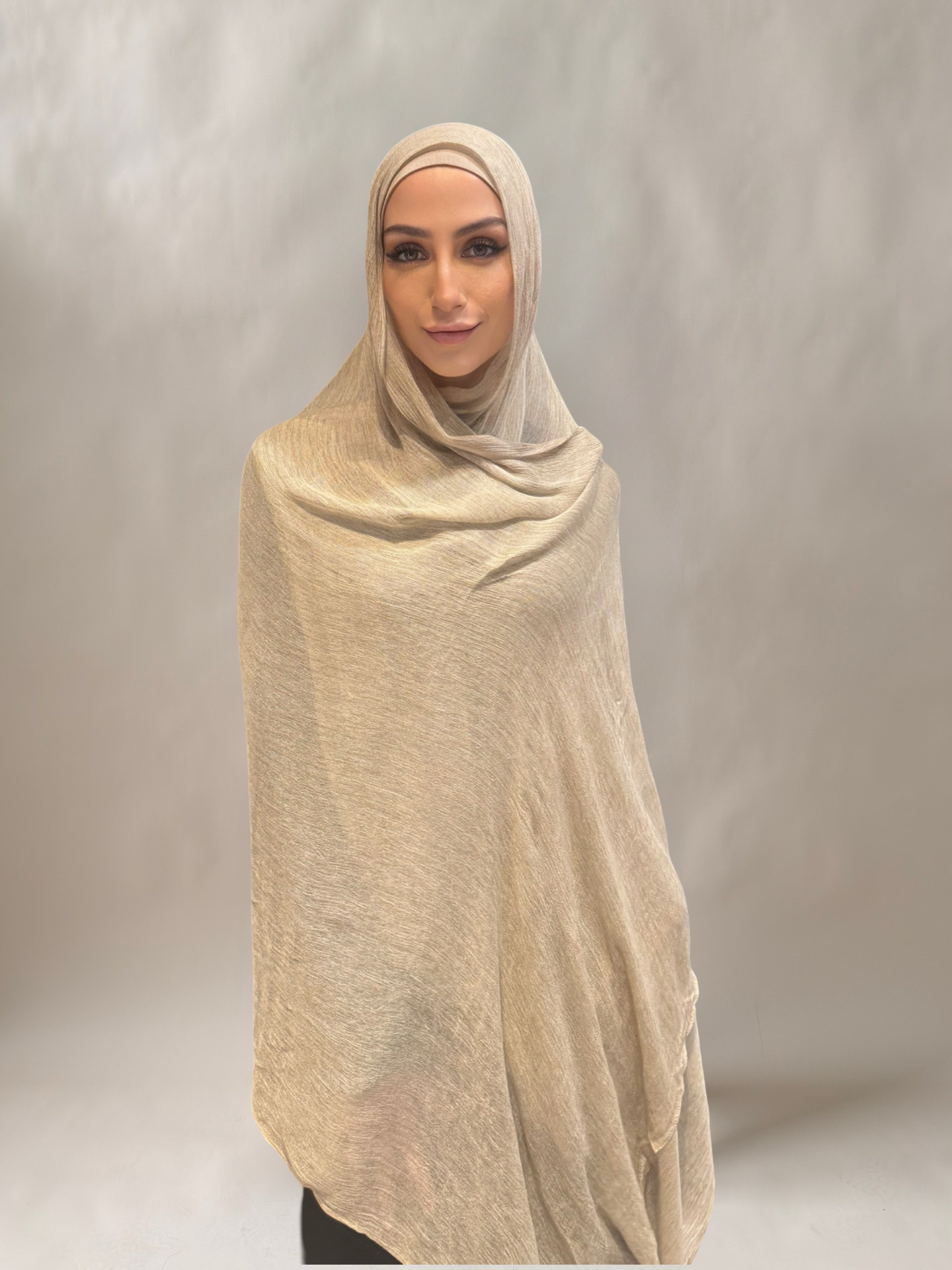 crinkled hijab set #43 light beige