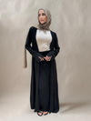 This elegant two-piece set features a flowy open-front cardigan, a coordinating tie-waist skirt with gathered detailing, and a soft stretch top for effortless layering. Designed with comfort and style in mind, the versatile pieces can be worn together for a polished look or mixed and matched with other wardrobe staples. Perfect for both everyday wear and special occasions.