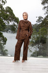 A refined two-piece set featuring a soft textured top paired with fluid straight-leg pants for an effortlessly polished look. Designed with a relaxed yet flattering silhouette, the top drapes beautifully while the pants offer comfort and ease of movement. Perfect for day-to-evening wear, this set blends modern elegance with modest sophistication.